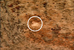 No natural stone tile will have a perfectly smooth surface. Even after the tiles are polished there may be small chips or pits that may be apparent in different lighting. Fissures, often times mistaken for cracks, are not. These markings are normal and add to the beauty of the stone.